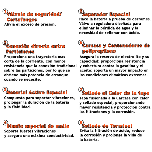 Siendo un bloque particionado, incrementa su potencia máxima, resistente a la corrosión para una mayor duración.