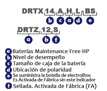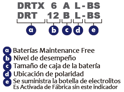 | Código | Aplicacion | Voltaje | Capacidad AH (10HR) | Medidas (Ancho x Largo x Alto) | Peso kilogramos | Polaridad | Terminal | Imagen |